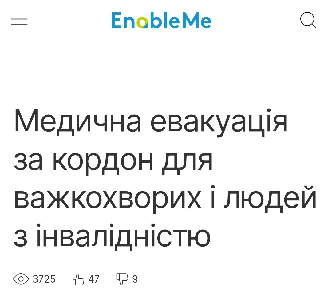 Бачив таку статтю (див. фото) про евакуацію важкохворих з теріторій бойових дій.